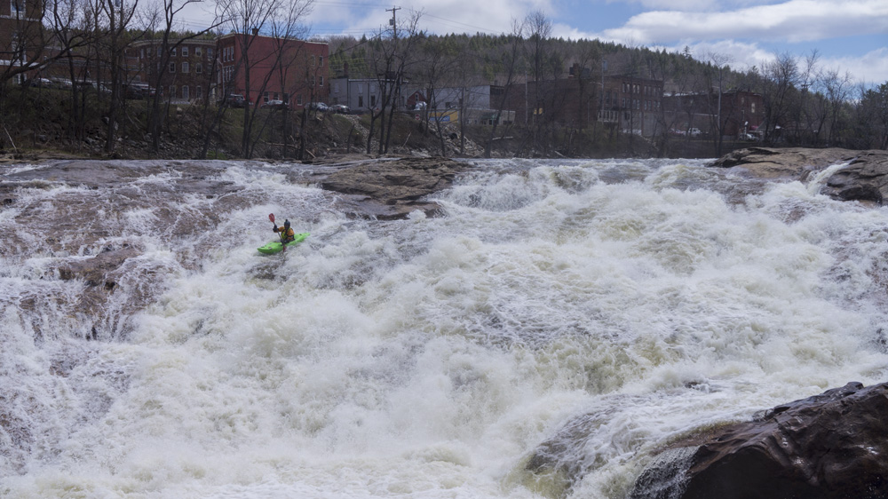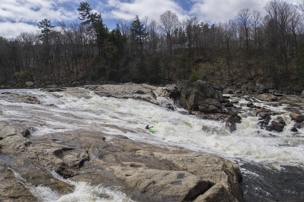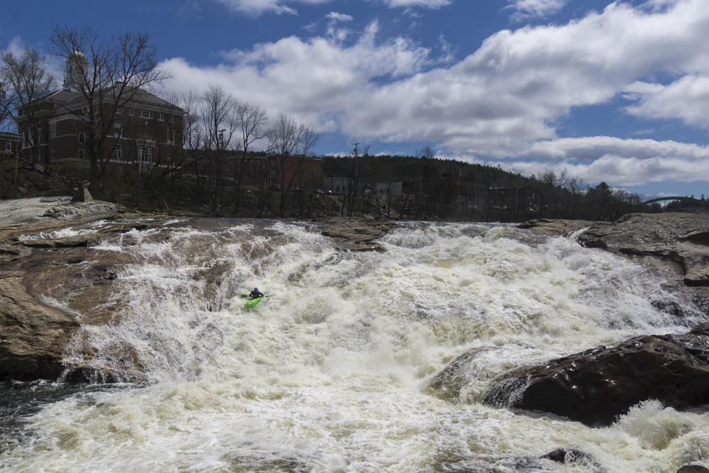 Bummer, the rain did not come. We did not get to run any other of the classic streams in Maine. But rain was forecasted in 2 days, for a week straight, over in Vermont. So we reached out to our friends there and told them we would be there the next day. But first, one last day to fill with desperation boating. We had first heard of this set of drops as they almost moved the Smalls Falls race to these falls. That put it on my radar. There was no info in the books or on AW. Apparently this river is usually without water as the papermill siphons off 3,000 cfs. Local boaters are beginning to spearhead the work to get releases.