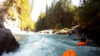 - Mine Rapid (V- to IV+). You put-in half way down the rapid, below the crux which is hidden from view I believe. Start right and move back left in the far right channel. There is an eddy on the right to move back to. The exit is a sticky ledge that you want to run on the left from the lip.