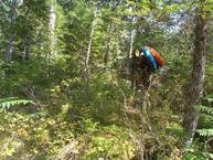 Put-in: Continue up the road, you will need at least a Outback / Highlander sort of car to make the rough road. But also not a super wide car as one spot is narrow. After maybe 3 km you come to a clearing with a burnt trailer. Park here. The trail/road continues though it is quickly washed out. Cross. After a few hundred yards there is a trail off to the right, as the one on the left begins to climb a hill. Go right. This then bends back to the right and heads downriver. Follow it and down climb when you get to a ravine that is also marked with ribbons. This leads you down to the river.