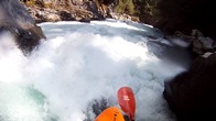 Everyone Flips (IV+ to V-). The idea is to run center moving right... hard right. The middle has a rock. The problem is the right has a big curler coming off the wall before dropping into an off angle hole. Everyone in our group flipped... other than me who was the only person who got pushed center and while bracing for a massive piton was surprised by a rather large boof over the hole. Total luck though... Scout left.