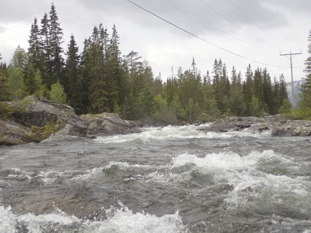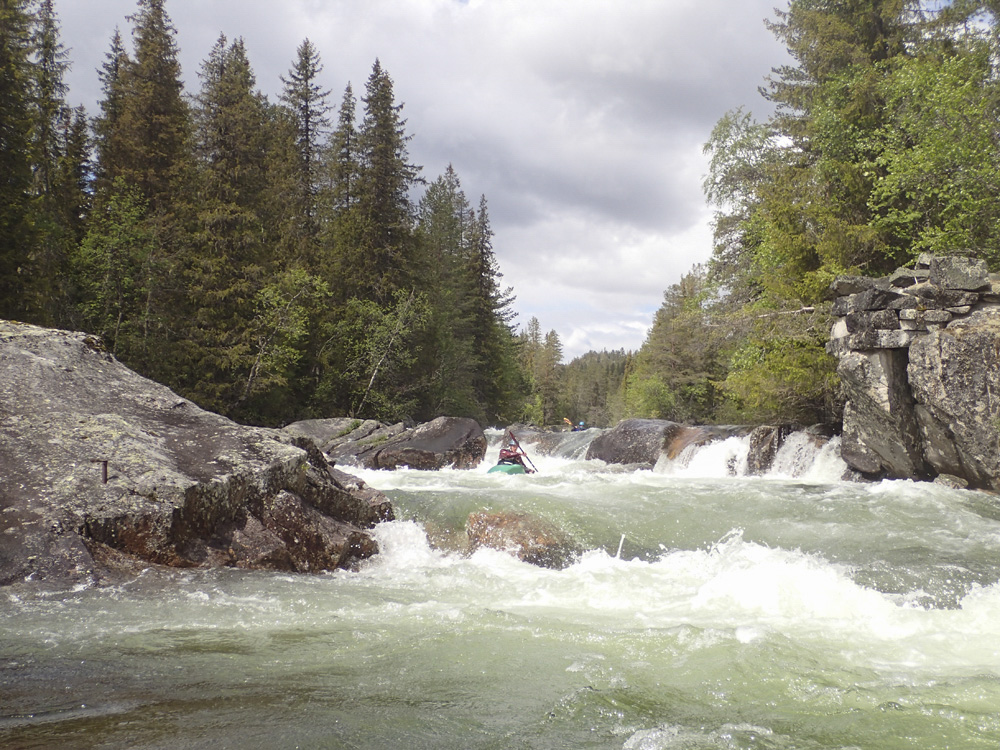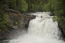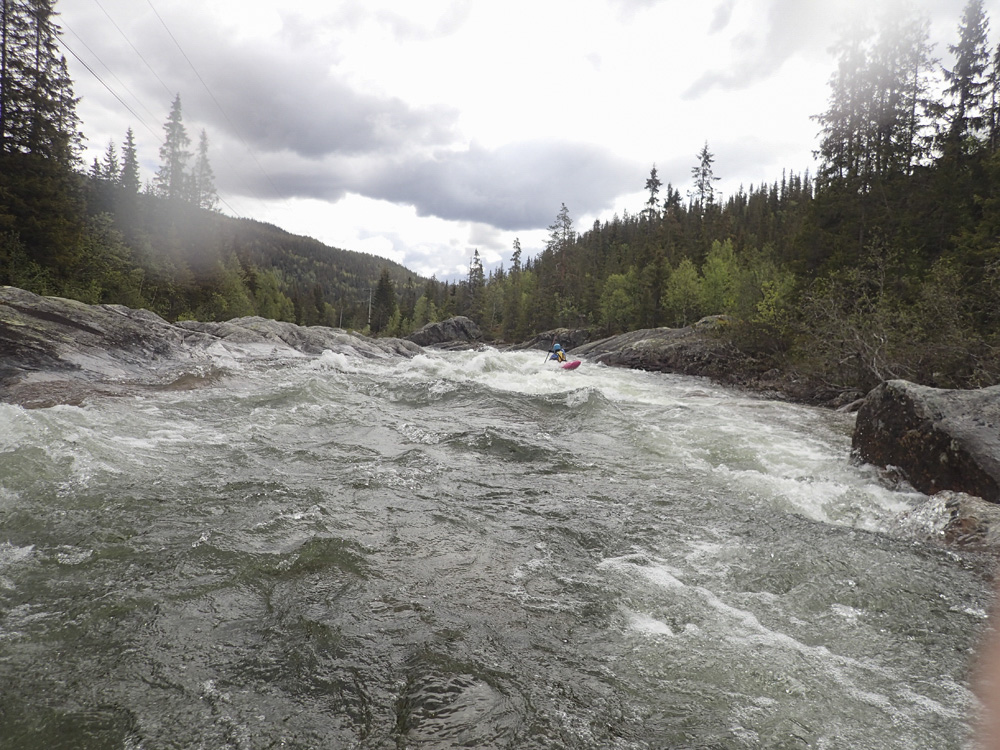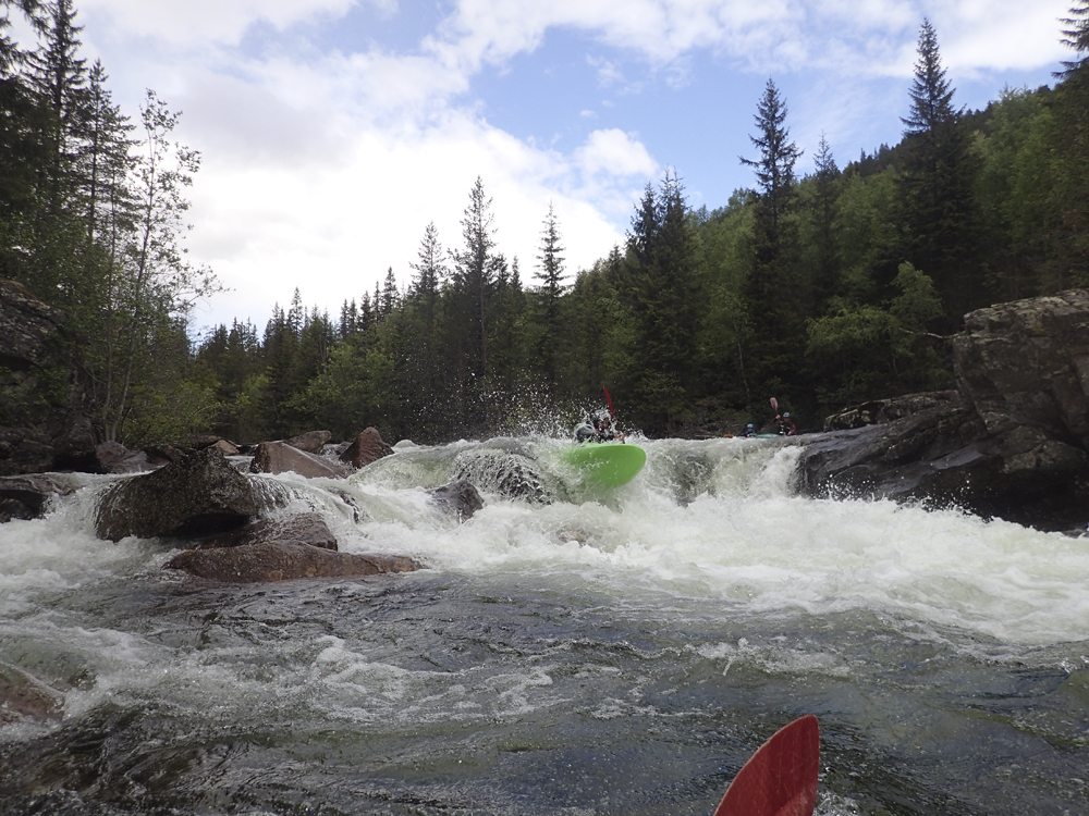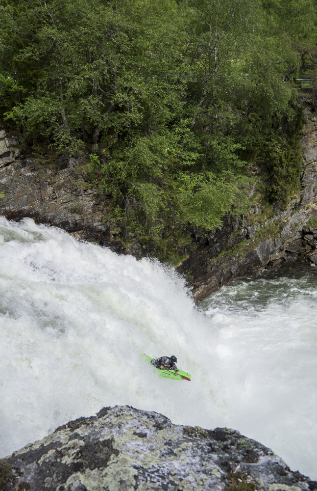 - Spånemfossen Falls (V). Probably the main reason you are doing this run is for this falls. A class IV lead in leads to a busy ramp that then turns into a slide before launching you off of a 25 foot falls. The whole falls though not including the lead in rapid is probably closer to 35 feet. The idea is to be center or so, and to not boof. I feared an autoboof off of the slide part and I ended up landing over vert. I think the best bet is to not take a stroke and basically launch already tucked instead of trying to stroke it. Lesson Learned.