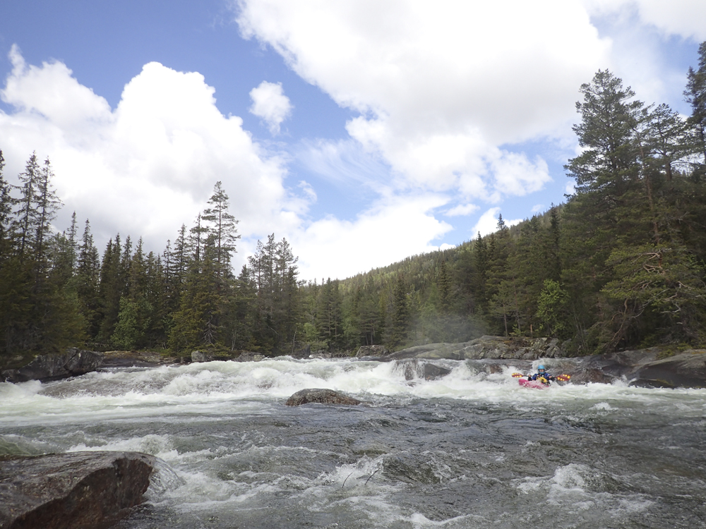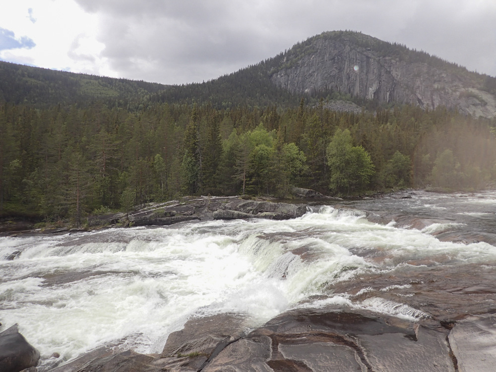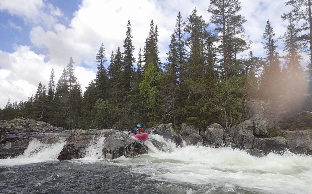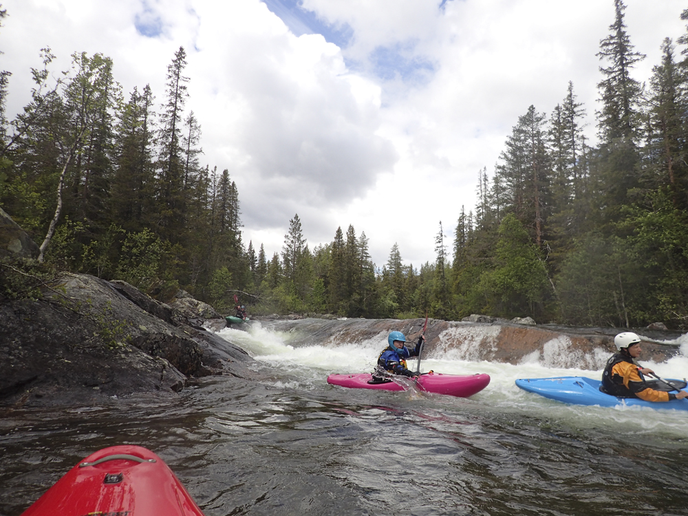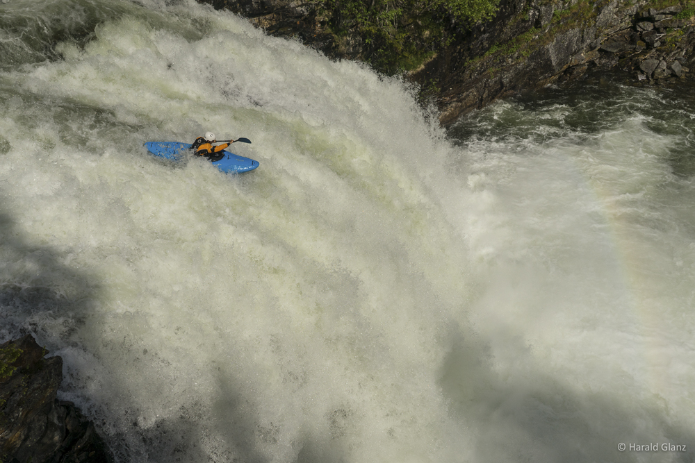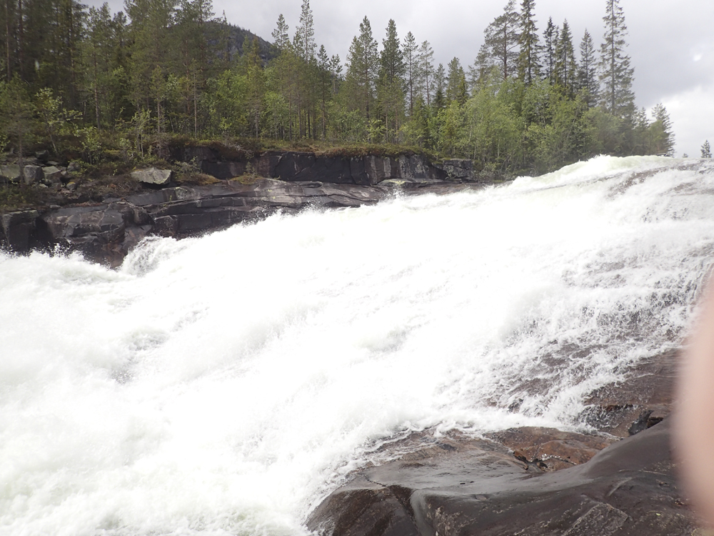 - Spånemfossen Falls (V). Probably the main reason you are doing this run is for this falls. A class IV lead in leads to a busy ramp that then turns into a slide before launching you off of a 25 foot falls. The whole falls though not including the lead in rapid is probably closer to 35 feet. The idea is to be center or so, and to not boof. I feared an autoboof off of the slide part and I ended up landing over vert. I think the best bet is to not take a stroke and basically launch already tucked instead of trying to stroke it. Lesson Learned.