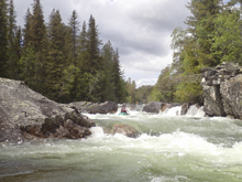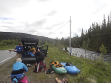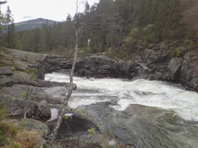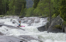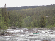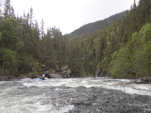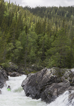 Take-out: From the town of Austbygdi, head up the river left side of the Austbygdåi for 10.0 km. There is a turn out (and sign I believe) for Spånemfossen Falls. If you get to the huge slide that is next to the river, you went 1-2km too far. Other choose to take out further downstream at the Put-in for the California Section.