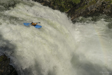 Downstream we made quick progress down to the main event for the day, Spånemfossen Falls. This falls had a bigger lead in that I remembered. Perhaps it was the flow. But we snuck around the lead in on the far right before ferrying back out into the main flow driving to the center and dropping our bows off the 25 foot drop that you hit with surprisingly quick pace. In typical "dainty" hand fashion, the paddle was ripped from my hands as I untucked prior to landing and I failed miserably at a few handroll attempts before giving up and swimming into the pool below. It ended up being the one swim for the group... which all things considered is impressive I guess. Just too bad it was me... as usual.