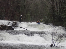 The run starts off with one quick rapid that should be scouted if you don't have someone that knows it. We were able to enter in a small channel on the right and then scout. Below here, the river is class II for several miles, with high stress over grown channels where a log jam could spell disaster.