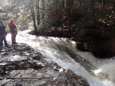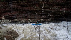 - Stairway to Heaven (V to V+). Scout from one of the micro eddies on the left, earlier is better. Enter left of center with little speed and make sure you never sit up right as you land several drops onto slabs. Slide down left of center if possible. Below, make sure to catch an eddy as the river pushes down a right channel which is sieved out. Recently someone put some climbing bolts in so now the portage is really not that bad at all. Not for class V standards at least.