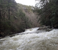 Put-in: Go back out to GA-136 and turn left, climbing up Lookout Mountain. After 5.5 miles turn left on GA-189 and follow for 1.6 miles. You will see a turn-out on the left just before the confluence of the North and South Forks of the creek. Park here. There may be rocks blocking the turn out, the owner is cool... the rocks are there people someone was stealing his rocks. Feel free to move (and put back) or drive around the rocks.