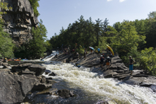 - First Slide (IV-). After a 100 feet of boogie, you get to the start. No stopping once you enter this until below the Split Slide. This one is straight forward, the water hits the right wall, I entered far left and slide down into the second cushion. Others went more direct. Downstream get ready for the next slide.