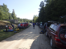 - Put-in Slide (V to V+). For those who want something big, look upstream from put-in. The easy scout is on river left. If you choose you want to run it, carry up on river right... or perhaps on river left to the lake and ferry over and go at it that way. Regardless, the entry falls looks fun, it is run far right. Then that lands on a slide with a step just below. This then gets really shallow and funnels you to the huge flake in the middle of the river that you should avoid at all costs. One guy went far left and got close, everyone else went far right... like far far right. Scrappy far. It looked... meh. We all opted to forego it and put-in below.