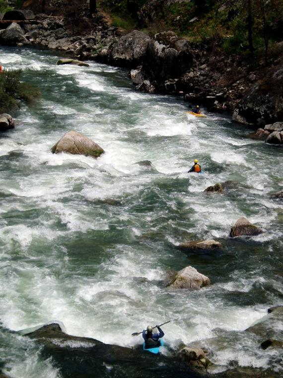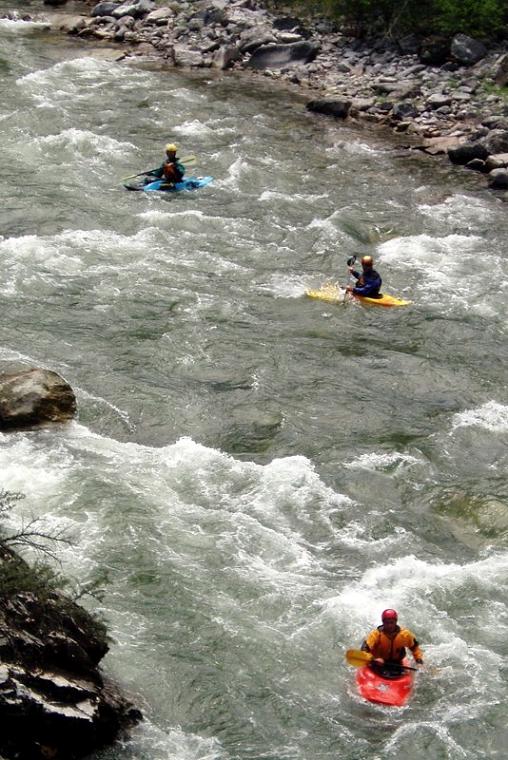 Fifth (IV-). The hardest rapid on the creek comes one insight of the Middle Fork. The rapid entails a zigzag from the right to the left around some large holes and many rocks.