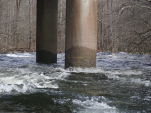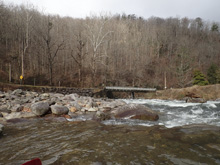 - Weir (?). A low head dam, at high flows, avoid this. Take-out above. If you want to take out at the Pigeon Gorge put-in or continue through, scout this on the drive up. There isn't a good place to stop right above it at river level.