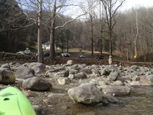 Take-out: Take-out: From Knoxville take Highway 40 towards Asheville. Take the last exit before crossing into North Carolina, exit 451 toward Waterville Rd. Turn right onto Waterville and stay left to follow it up the Pigeon River. At the confluence with Big Creek there is a large rafting access. Most people will continue up Waterville Rd though, crossing the creek twice in 0.2 miles and parking just on the far side of the second bridge.