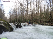 This run is a great intro to typical smokies whitewater. I thought it was similar in difficulty to the rapids on the Little, below the sinks and above the elbow. But, perhaps not quite as big of climaxes but also more continuous. I think it is very complimentary for anyone capable of the Little, also be capable here. Swims here though could result in some bruises, so get a solid roll before venturing out here.