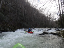 Lots of rain fell the prior day, but surprisingly, only a handful of options had come in. With hopes of getting a new run, we agreed to a day with Jim, Caleb, and Emily. Their plan was to hike up Big Creek. With Diane 4.5 months pregnant, however, neither the hike with the kayak nor the steep rocky nature of that section seemed like a good decision. So, while they did that, Diane and I did the Lower section of Big Creek which is a couple steps easier and safer for the baby. I was happy too, as I had done Upper but had not done the Lower, so a new run was achieved. We did two laps on the run, I thought that the river was going to be really low, at 2.8-2.9 or so, but this actually ended up being good fun still, with an exception of the very last rapid. That one is a piece of you know what. The rest of the run however was a continuous smoky mountain typical affair, but limited to class III rapids that I am sure at higher flow, due to the continuous nature, earn a class IV rating. To our surprised, we enjoyed it enough that we did a second lap on the run.