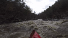 - Narrows (III+ to IV-). At high flow this rapid starts 200 yards above the crux but is read and run, mainly with strong eddy lines as the walls tighten. We ran down the middle of the crux, the main thing is to avoid being on the right third of the river at the top of the crux as that is a bad hole at high flows. Once below the entrance, just mind the eddies that form off of each wall throughout the remainder of the rapid, stay center to be safe.
