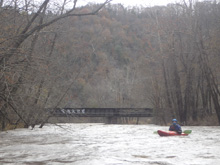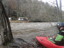 Put-in: Get back out to US-70 and continue east away from Hot Springs. In 4.7 miles, you will cross Big Laurel. The gauge is on this bridge. But the café asks that you don't park as river access. Instead, turn right to stay on US-70 and park 200 yards later on the right. There is a trail that heads down river and hits the river in 200 yards.