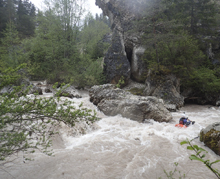 - Cutback (IV). This rapid led us down into a small eddy on the right. I hoped out quickly to scout here. The river then went into a rocky pile. We ferried out into a small chute cutting back to the left.