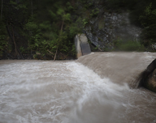 - Mellow (II). This section is super mellow as it has been filled with small rocks from the constructed hill sides. It is also a bit ugly... but at least everything improves downstream. Also, if it was clear I think this section would have nice mountain views of what surrounds you.