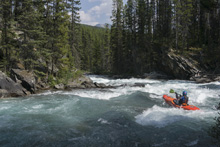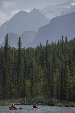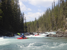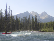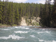Take-out: On the Trans-Canada Highway, from Lake Louis, head North for 3 km. Just after AB-93 goes off to the North, be ready to pull into a shoulder turn out on the right just before you cross the river. Don't miss it as turning around is a pain.