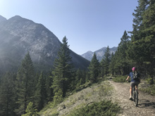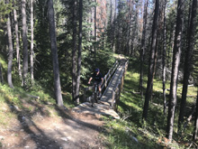 We decided to start the day with a bike ride in near the town of Banff. The new trail came highly recommended so we gave it a go. We found the trail, "Topp Notch," to be quite challenging and resulted in a lot of bike walking for us. There were some really technical parts that we just weren't good enough for. But we climbed back up and road the Star Wars loop next before taking the Bow Falls trail up to the famous falls in the middle of town. Sadly, the falls was much too low to run, a fact which we already knew, but was confirmed on site. We then road the road back to the car, hit up the Banff Ave Brewery for some drinks while overlooking the town while we waited for Gerard to finish his morning activities to join for the Bow later that day.