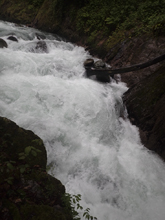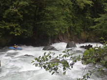 - Fourth Rapid (V). This rapid has a lot of rocks in a lot of wrong places. You want to enter far left and boof down into a small slot. This then clears you of all the danger, and allows you to then run the exit cascade easily down the center. There is another line as water comes up hugging the far right shore. There was also another line that looked sketchy which was starting right and cutting left before the exit. It looked sketchy because of a rockpile in the middle which looked pinny/sievy.