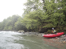 Take-out: downriver 1 km, there is an open, flat area on the left. There is a trail heading upriver river 100 yards from here.