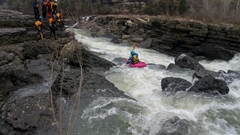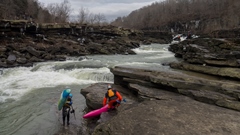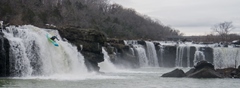 - Great Falls (IV to V). The falls start immediately below put-in. If the water is higher and you can run the Mill Side or the High Line, the falls are immediate. For those going to the Step Down or Spout, you are graced with a tenth of a mile of warm up as you shed a little gradient in class II. The only line that runs at low water is the spout line... so it is all I know. It is the far right line, drop over the center and try not to just straight plug into it as although it is not shallow, it also is not super deep.