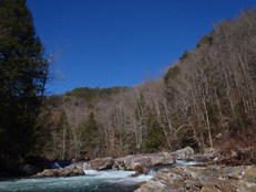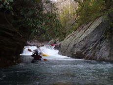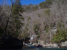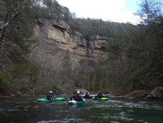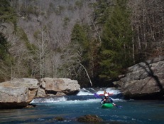 Another business trip to Huntsville, Alabama allowed me to mix some business with pleasure. With the meeting schedule for Tuesday, I choose to fly across the country Friday night rather than Monday, allowing for 3 days of boating prior to the meeting. With steady rain falling for the previous few weeks in the Walden's Ridge area, the rivers were charged and a good time was assured. The first day, on four hours of sleep, we headed 30 minutes north of Chattanooga for day on Cain Creek which then runs out on the North Chickamauga (Chick).