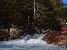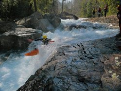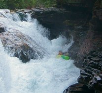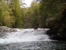 - North Chick Falls (IV to IV+). A fun slide leads to a choice, drive left and run the vertical ledge or run down the middle of the two tiered drop. Downstream starts a really fun section of boogie, full of slides, holes and ledges.