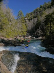 After only a mile or so of warm up, you get to you the start of the goods. A few slides and small falls lead to "Mandatory Portage" which has undercuts on either side of a hole. Despite its name, it is a fun rapid to run though I did flip and got pushed into the undercut left, cutting up my knuckles pretty good before rolling up off the wall. Downstream you quickly get to the Vortex gorge which is the whole reason (in my mind) for doing the run. A series of fun drops sandwiched between lush cliffs is truly a special place to take a moment to soak in the scenery. Downstream, the drops continue for a short ways before letting up down to the confluence with the North Chick. From there, the rapids are mostly class III-IV with a few standout sections of class IV including the Chick Falls. Always be on your toes as this section is notorious for holes and piton rocks. All in all, the run is very worth doing if you are in the area. Also, it tends to hold water pretty well after rains so it is a common run for those living in the area.