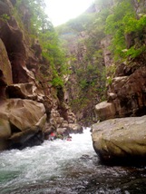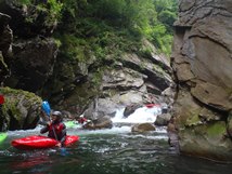 If a 2.6 mile long walled in gorge, with sections so narrow your boat can't turn around is your thing... then this river is for you. The run needs to be low due to the crux of the run deep in the walled in gorge. There are two rapids, both of which can cause problems at higher flow... and both of which would be extremely difficult (read impossible) to set safety on from above. Once one person probes then things change a bit. But I have seen video of groups who have had to scale up the wall when hit by the first of these two drops at higher water.