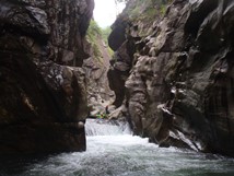 Warning: In 2016 there was a fatality in the final rapid of the run. Apparently the river changed, necessitating a rope be lowered in prior to entering the canyon to portage the final siphon. This group did not know of the change, and were forced to run the sieve. As there are many places in this canyon where rock or wood could spell disaster, I highly recommend reaching out to locals to find the current state of the canyon before entering. Article about the accident (German)