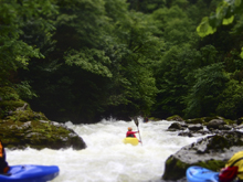 With rain having hit the area the prior night, Egor used our "flex" day to hit a rain-needed run an hour north of Batumi. This run is up a rough dirt road that follows the river. You can see the crux of the run from the road, but once on the river the road is never really noticed. On our first lap of this upper section, we put-in at the National Park's visitor center. They had nice displays with English translations and were happy to have us and let us put in behind their center. This resulted in us having an extra km or so of somewhat manky boating down to a confluence where the flow doubled and the river channelized. It was worth doing once to put in from the top for sure.