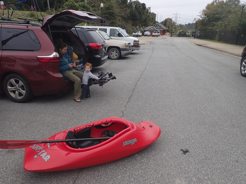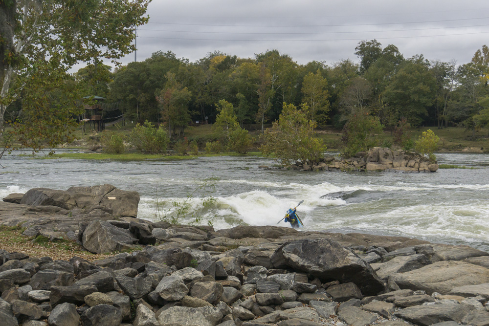 For the past few years I have seen friend after friend spend some time down in Columbus Georgia during the winter months to beat the cold, and enjoy some dependable kayaking on this river. But, it is 4.5 hours south of us and I am not super excited about playboating, so it was never a huge priority for me. But, this year, Diane had 7 days off of work and there weren't any natural rivers running, so we headed down to see what the fuss is about. Stephen Wright has lived down there the past few winters, so we had someone to meet up with which is always nice. Plus, he has become the unofficial caretaker of the area and has keys to the Whitewater Express on the Alabama side of the river which closes their doors to customers for the winter, and opens them to kayakers! So, rather than doing some urban camping or van life, we set up camp inside the store itself which was great! The location would be a little less than ideal for camping in the gravel lot, due to homeless traffic through the area, but it has proven pretty safe regarding vehicle break ins, in part due to the friendly interaction's that kayakers have had with the homeless community. While I was there, Clay dropped an over-thruster on the walk to the river, and several hours later one gentleman found it and went out of his way to bring it to us knowing it was kayaking equipment.