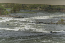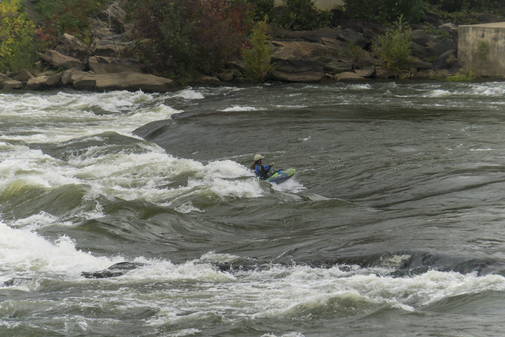 Great Wave. Just downstream 200 ft from Good Wave is another feature which is smaller and more forgiving for learning. Apparently before the construction, this wave was the premier wave. Now, Good Wave overshadows it for sure. At 3 generators the pool was full enough that the wave itself was very surgy. It meant you could have a great foam pile one second and a second later, no wave to speak of. At lower flows, when the pool is lower, this is helped. Apparently, it can get a bit trashy at times too.