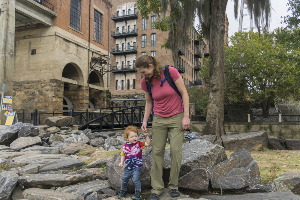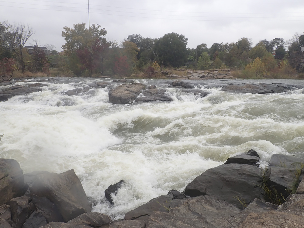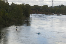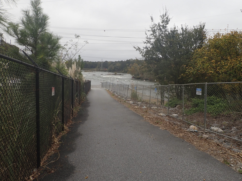 Put-in Full Run: Exit the Wilderness Express parking area and take 13th St back over into Columbus. In 0.5 miles turn left onto 2nd Ave. Take 2nd Avenue for 1.6 miles before turning left onto 32nd Street. Take it 100 ft to the T, and turn right onto 1st Ave. In 0.1 miles turn left, following the signs for the Riverwalk at the Georgia Power plant. Follow this down to the parking at the river.