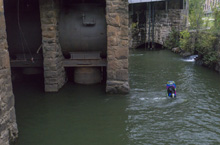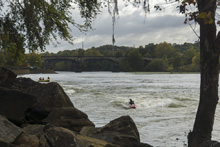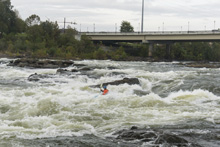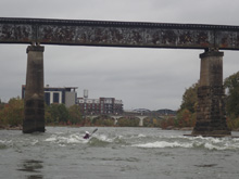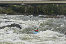 Powerhouse. This really isn't a part of the rapid, but from Wave Shaper Island you walk over a small foot bridge and immediately upstream is the old Powerhouse. It is cool to paddle up there and gawk at the industrial age. The pool immediately below the footbridge is also a popular spot for beginners to get their pool practice in.