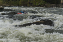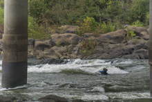 - Rapid (II+). After a small pool, you get to another rapid. This rapid is probably the biggest of the in between stuff (at least at 3 generators). Just run down where ever, there were a few front surfing waves both left and right.