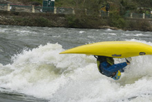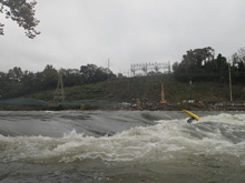 Wave Shaper Rapid. This rapid is sandwiched between two concrete shaper walls. So, stay middle down the ramp, as each of these walls have deep pocket holes next to them. But, staying middle is simple so no worries there. Below, at 3 generators, there are two fluffy features in the middle that you can run through, or even surf. Most people who intend to catch Good Wave on the fly, eddy out on the left either just above, or at the seal launch spot for the wave. Just be careful about eddying out left too high as it is kinda nasty hole and eddy at the very top, but honestly, you would have to work pretty hard to end up in that eddy I think.