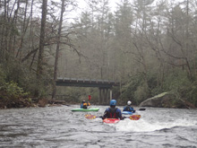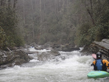 Put-in: Go back out the 2.7 miles to NC-107. Turn left. Continue for 6.2 miles before turning left onto Bull Pen Rd. Turn and follow the road for 3.6 miles to a triangle intersection, stay left and continue for 1.7 more miles as you drop into the river canyon. This too is mostly on dirt. But the first is in good shape.
