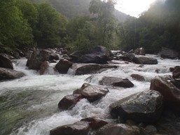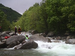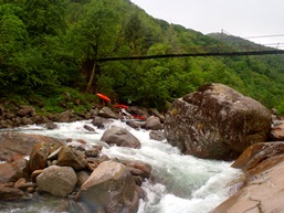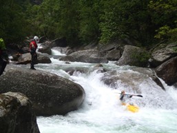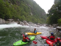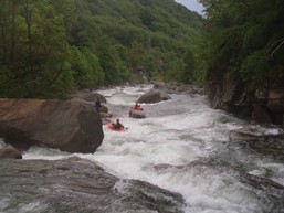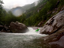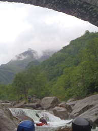We left Campertogno at 8 am to start driving... the sun was shining and the drive went quick. As we arrive though we are told that it has been raining cats and dogs in the mountains all night. And no sooner than they finished telling us that, than it once again started raining hard. Upon inspection of the most famous drops on the Chiussella, it was obvious the flow was high, too high to safely run those drops. But, luckily with the Chiusella, when the river is high... you can put in below those three drops and continue downstream... and go past the normal take out and getting an additional km of fantastic whitewater. Some in our group still had not had their fill and decided to continue on even further though most of our group was still too tuckered from jet lag and two full days of boating.