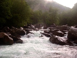 S-turn (IV). An S-turn rapid marked the home straight away. We started right but worked all the way left to not crash into rocks.