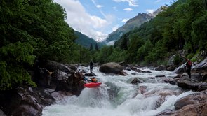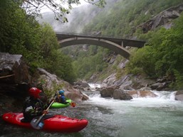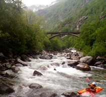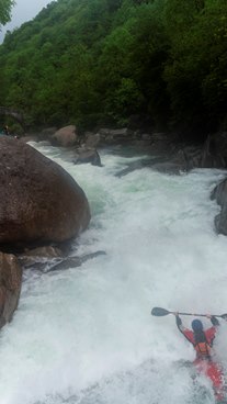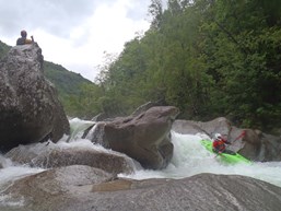 The run starts off which some very nice bedrock. 20 feet below put in is a large drop that goes much better than it looks. The bedrock quickly changes to boulder gardens once you pass under the road bridge. Most of the group portaged one particularly congested rapid early on. Near the normal take out is a large slide with a tricky hole and pocket eddy to avoid. Downstream the boulder gardens ratchet up a step. Getting steeper, harder, and more consequential. I feel that this section of river is the hardest that we did on our trip. Steep drops with powerful holes in and amongst sieves. Halfway through this lower section we once again portaged a junky rapid that had no clean lines. Below, the river let up to class IV+ and ended with one super nice boof. Take out was at a camp that is expensive to stay at, but if you are in need of a shower they are only 1 Euro. 3 members of the team decided to continue down to Traversella and reported less portaging and overall easier whitewater. From the road on the drive in, this section did not look overall that inspiring... but they said it was fun.