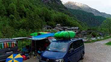 That night we camped up in Fondo at the uppermost put-in for the Chiusella. There is a small dirt lot and even a small restaurant. The latter being quite surprising as Fondo strikes me as a forgotten village that I wouldn't be surprised if it were abandoned 100 years ago. But alas, folks still live there. Sadly, our 11 team members that night were too many for the restaurant to serve so instead we drank our 1 Euro wine and cook gnocchi ourselves.