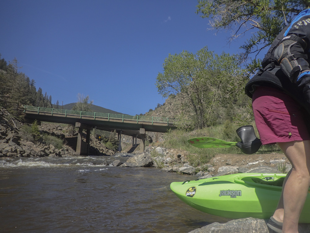Take-out: From Golden, take US-6 up the Clear Creek canyon. After 9.1 miles you will see Big Easy Trailhead's parking area on the left. This is the lower take-out. If you want to use upriver take-outs, continue driving up US-6.