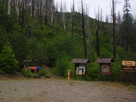 Put-in: Continue up toward Clear Creek Rd. You will cross the creek and come to a fork, stay right and in a few hundred yards you will come to the parking area and trail head. It is about a 0.9 mile hike to the top from here.