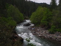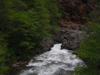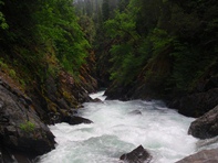 When not preoccupied with the rapids, take time to look above and below you. Unlike many other "Clear Creeks," this creek actually is crystal clear. Amazingly so. You could easily see 20 feet to the bottom of the deepest of the pools. And towering above you were steep forested walls at times locking you in completely. Hiking out of this run, although you are never far from the road would still be incredibly difficult.