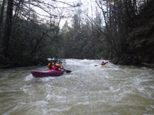 The run starts with a short hike in that only takes a few minutes, and takes you past a super sketchy looking trailer. Who knows what sort of activities have taken place here! It is abandoned, but we still made quick time past it. Once on the river the river starts mellow for a good little ways. Soon, rapids start coming and are all easy enough to read and run. The first real drop is on a right turn and is a ledge with decent hole. We just went down the middle. The rapids stay pretty mellow until late in the run when the river follows down the right wall and there is a good size hole to boof over. This is immediately followed by a shallow slide that drops off a ledge. We went far left. Below, things mellow again the rest of the way to take-out.