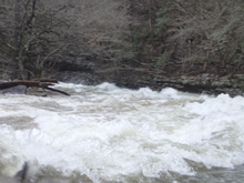 | Flows: | 1 to 3.5' on the gauge at take-out. I didn't see the gauge, but apparently it is ~100 ft or so upstream of takeout on creek left. |