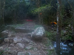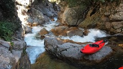 The Codi is a tributary of the very famous Rizzanese river. In 2011 (or maybe it was 2010) the Rizzanese had a dam put in that also drowns the confluence with the Codi. The dam's biggest impact is that it dewaters classic sections of whitewater on the Rizzanese, but another impact is that now the access to the Codi takeout is more complicated. Apparently the week before we boated the Codi, some friends had a very tense experience with the dam operators who are still conducting work at the site. Because of this, it was recommended that we take at a footbridge about 2/3rds of the way through the run. The bridge offers a steep hike less, than a kilometer long, up and out of the canyon to the road above. It also causes you to miss two rapids, one of which I have seen pictures of and looks like possibly the best rapid of the river. That is really too bad. I know that there is also an upper run on the Codi, perhaps it is now a good option to do the upper in conjunction with the lower. The upper from the photos I have seen looks a tad harder, though who knows since all I have seen are pictures on facebook.